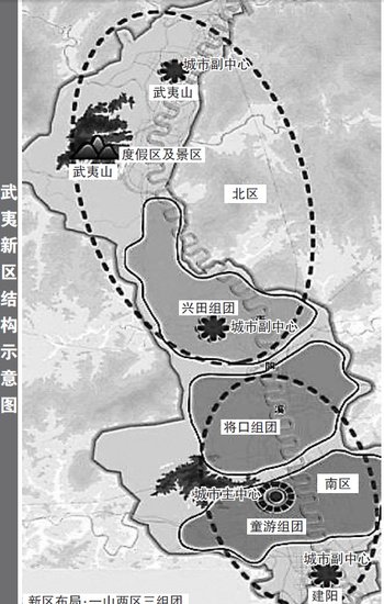 《武夷新區(qū)城市總體規(guī)劃(2010-2030)》已獲省政府批準,根據(jù)規(guī)劃,武夷新區(qū)總占地面積4132平方公里,其中新城占地面積380平方公里,包括童游、將口和興田三個組團,是武夷新區(qū)重點建設(shè)區(qū)域。