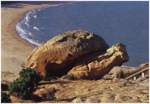 鵝尾山位于湄洲島最南端突出部的鵝尾山,海拔不足70米,凌空俯瞰,猶如碧波中托出的一朵長柄蓮花。它以獨(dú)特的海蝕地貌風(fēng)光吸引著千千萬萬的游人。大自然的鬼斧神工把山上的石頭雕刻成各種姿態(tài)生動、形象逼真的動物造型,使它成為一座天生地造的石盆景園。而它那滿山嵯巖的陽剛之美,又同環(huán)山的沙灘、林帶的柔和之美,構(gòu)成剛?cè)嵯酀?jì)的和諧美感。