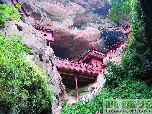 峽谷極其發(fā)育是青年期丹霞地貌的最主要特征。多期構(gòu)造活動(dòng)形成的復(fù)雜斷裂系統(tǒng)加上流水作用,雕塑了地質(zhì)公園溝壑縱橫的地貌景觀。由80多處線谷(一線天)、150余處巷谷、240多條峽谷構(gòu)成的峽谷群,以其峽谷深切、丹崖高聳、洞穴眾多、生態(tài)天然為特色。它們有的縱橫交錯(cuò),有的齊頭并進(jìn),有的九曲回腸。人們進(jìn)入公園,就可見到或直或斜,或?qū)捇蛘母黝悕{谷,感受峽谷形成的過(guò)程。