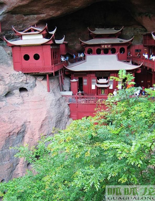 泰寧地質(zhì)公園內(nèi)丹霞洞穴數(shù)量之多、洞穴群的規(guī)模之大、洞穴造型和組合之奇特、洞穴的可觀賞性之罕見,堪稱“丹霞洞穴博物館”。洞穴大者可容千人,小者不足寸余,擬人擬物、擬獸擬禽、造型奇絕。無(wú)數(shù)奇洞鑲嵌于赤壁之中,或?qū)訉犹庄B,或成群聚集,蔚為壯觀。