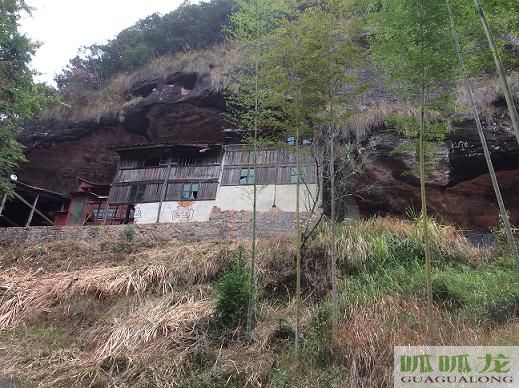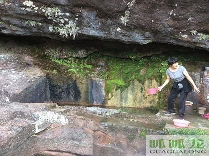 門外的石崖辦邊就勢鑿了一個石池,接著石崖滲出的泉水,供生活用。