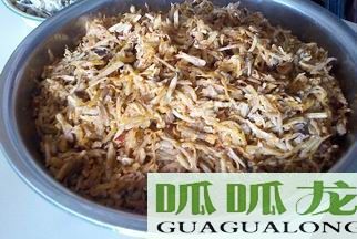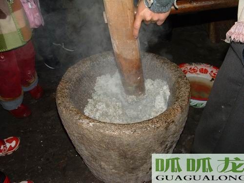 具體做法:取粳米,秈米按一定比例混合浸泡,再參入大量野外摘來的一種叫做"水曲"的小草墨漿。漿磨好后,入鍋熬至半熟起鍋,再案板上搓揉成質(zhì)地均勻的米團,之后將大米漿團分成若干個鵪鶉蛋大小的小米漿團,捏成薄皮,包上餡,上籠屜蒸熟后便可以食用,故又稱其為“米餃”。春社這天的包糍餡是非常講究的,要用上好的冬筍,熏肉,熏豆干,芋頭,香菇,蔥等做餡,籠屜要鋪上松針.蒸出來的包糍有一股松針的清香味,油而不膩,一口下去,汁會沿著嘴角流出來,讓人食欲大開。