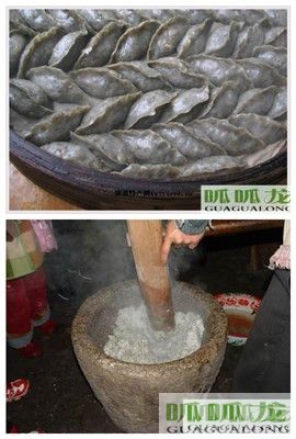 制作步驟:泡米,將米磨成漿,摻入適量的水曲草,入鍋熬至半熟起鍋,再案板上搓揉成質(zhì)地均勻的米團,之后將大米漿團分成若干個鵪鶉蛋大小的小米漿團,捏成薄皮,包上餡,上籠屜熟后便可以食用,故又稱其為“米餃”。蒸出來的包糍,油而不膩,一口下去,汁會沿著嘴角流出來,讓人食欲大開。