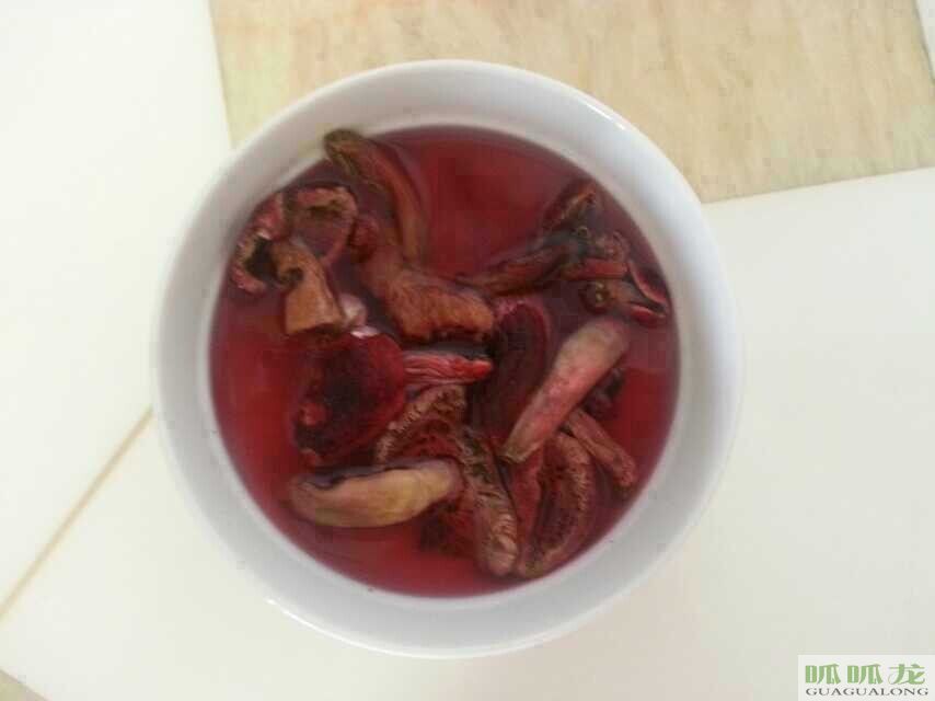 將紅菇干品用清水快速?zèng)_洗后,放入適量水中浸泡十分鐘左右,再將紅菇放入肉類中煲湯、味美、香甜、是賓館、酒家、家宴營(yíng)養(yǎng)價(jià)值的天然食品。