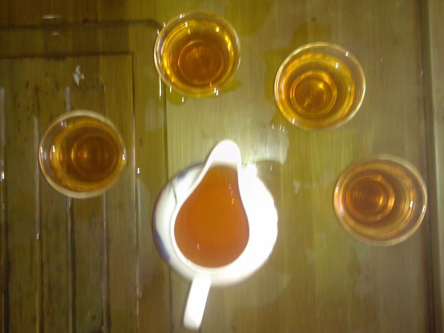 五、出湯:將壺中的茶湯沖入公道杯中,目的是使茶湯均勻。
